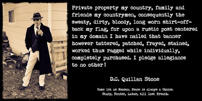 Liberties cannot be allowed by reestablishing various polities, laws, regulations as well anthems, pledges, flags even bills/lists of rights and constitutions, but by the following fundamental... "Private property my country, family and friends my countrymen, consequently the sweaty, dirty, bloody, long worn shirt-off-back my flag, for upon a rustic post centered in my domain I have nailed that banner however tattered, patched, frayed, stained, worked thus ragged while individually, completely purchased. I pledge allegiance to no other!"